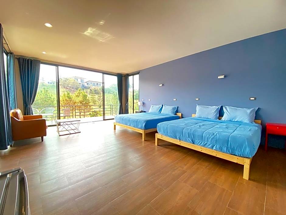 The spacious quadruple room offers air conditioning, a tea and coffee maker, a balcony with mountain views as well as a private bathroom boasting a shower. The unit has 2 beds.